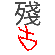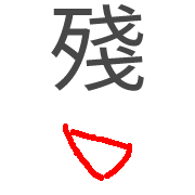 字形僅有部份筆畫,視為殘缺,以「丙」為代號(圖示「殘」字),完全沒有筆畫則以「丁」為代號(圖示「空」字)。