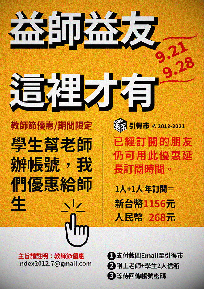 益師益友.這裡才有――928教師節訂閱優惠(活動結束)